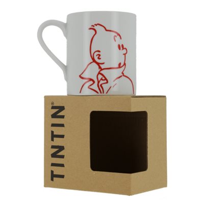 Tasse blanche en céramique, Tintin dessiné en rouge. Parfait pour toutes vos boissons chaudes, va au micro-ondes et au lave-vaisselle. Ce mug saura faire plaisir aux amateurs de la bande dessinée.