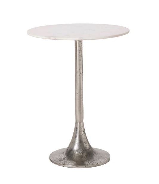 Inspirée d'un classique du design du milieu du siècle, cette superbe table d'appoint arbore un piètement tulipe pour un charme intemporel. Sa finition nickelée antique et son plateau en marbre naturel lisse en font le choix idéal pour sublimer tout intérieur contemporain ou de style transitionnel.