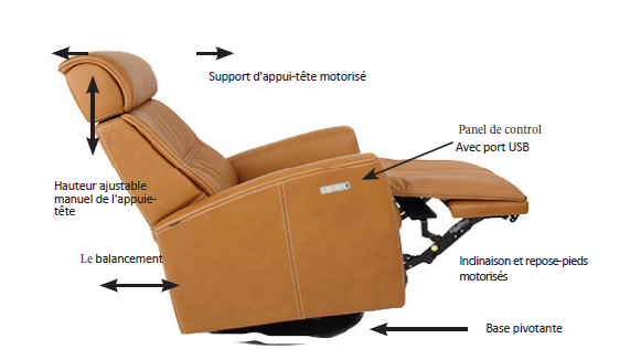 Le fauteuil Milan électrique, inclinable, berçant et pivotant invite à ralentir. Son mouvement fluide et enveloppant crée une sensation de légèreté, comme si le corps trouvait enfin sa position idéale pour se reposer et savourer pleinement vos moments de détente.