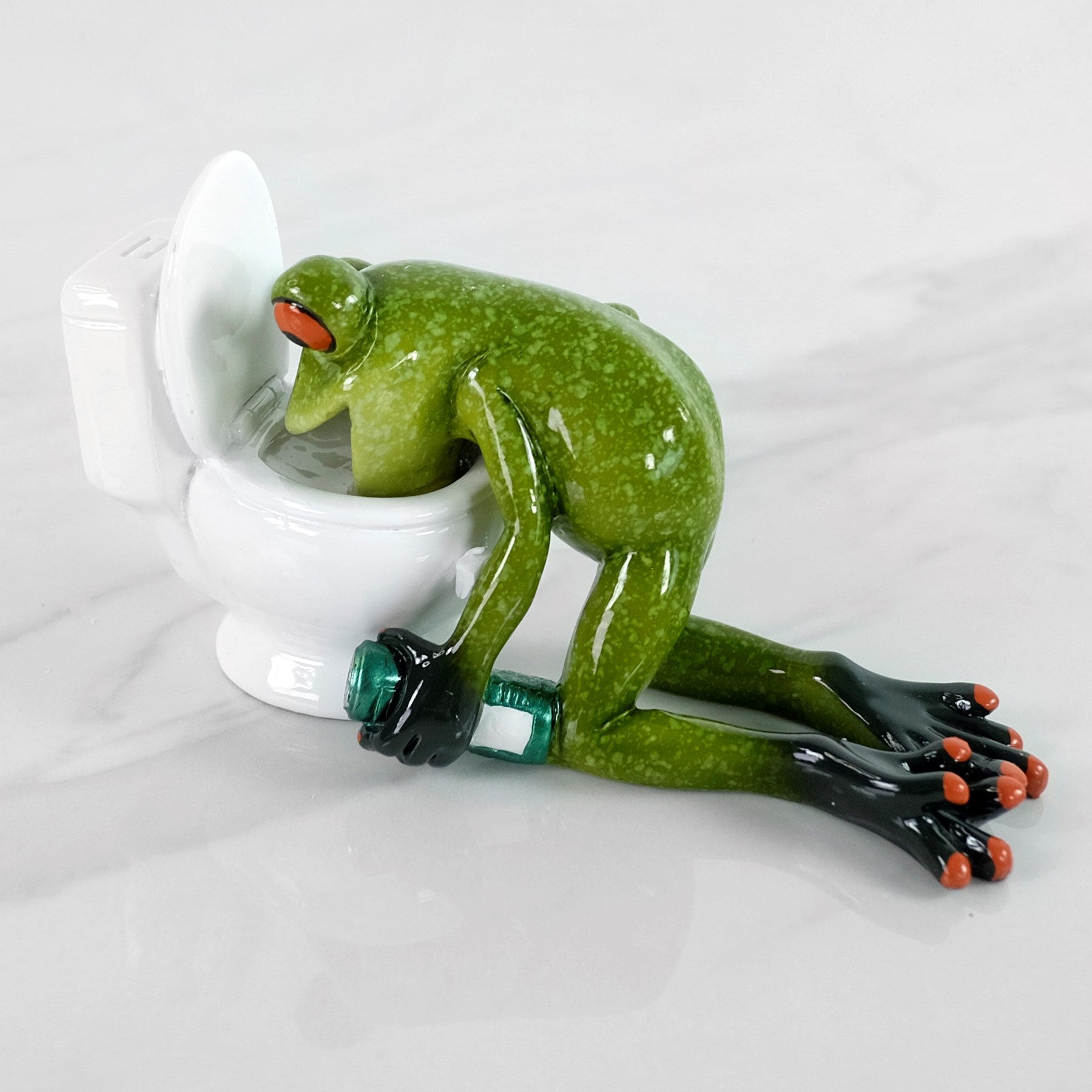 Pièce de décor audacieuse et originale mettant en scène une grenouille dans un moment comique et inattendu.  Parfaite pour ajouter une touche d'humour et de caractère à votre intérieur.