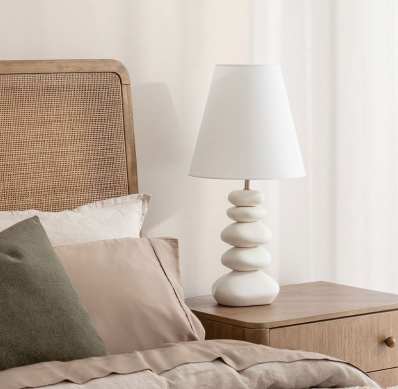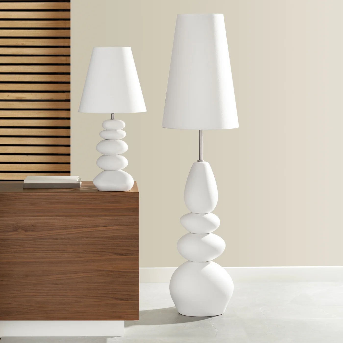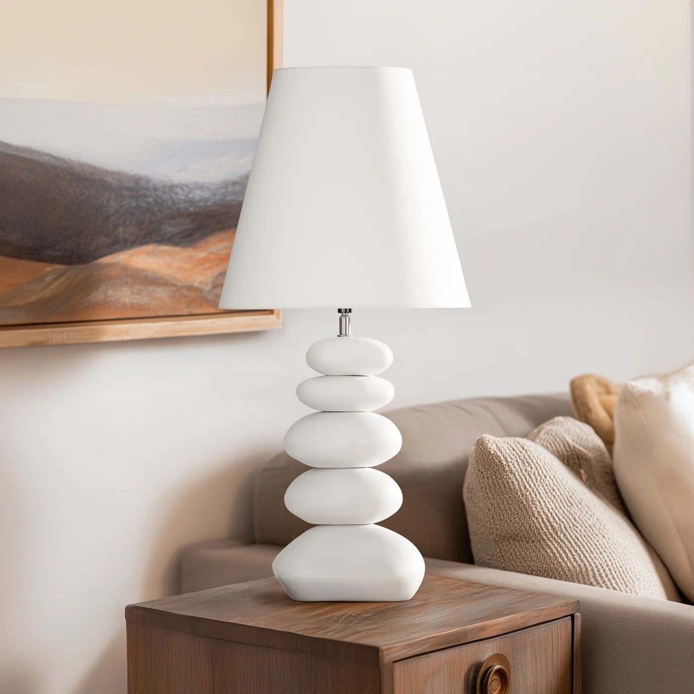 Lampe de table Oslo aux lignes épurées, composée de galets empilés en finition blanc mat monochrome qui transmet une pureté visuelle remarquable. Son design minimaliste crée une ambiance zen tout en diffusant une lumière douce et apaisante. Parfaite pour une table de chevet, un bureau ou une console, cette lampe allie fonctionnalité et esthétique contemporaine. Un accessoire incontournable pour les intérieurs modernes en quête de sérénité.